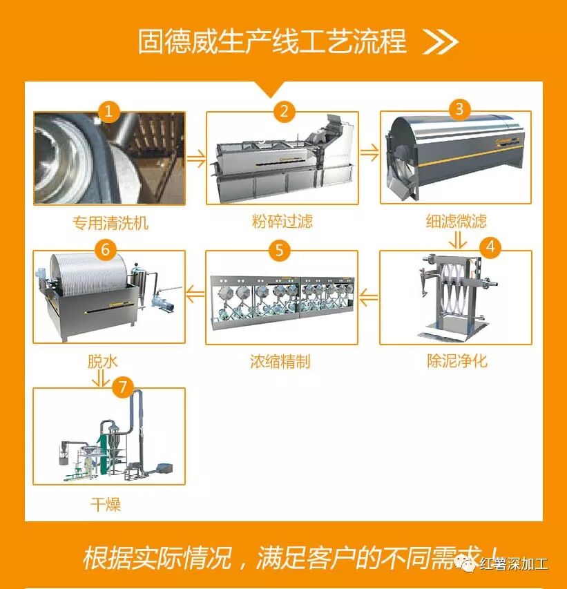 葛根淀粉的生產過程和生產木薯淀粉相似,也是一個物理分離過程,即將葛根中的纖維素、蛋白質、無機質等物質和淀粉分開。考慮到葛根淀粉必需保留一定數量的藥效成份,因此,在生產過程中還要采取一些措施,盡量減少藥效成份的流失,滿足用戶對產品質量要求。